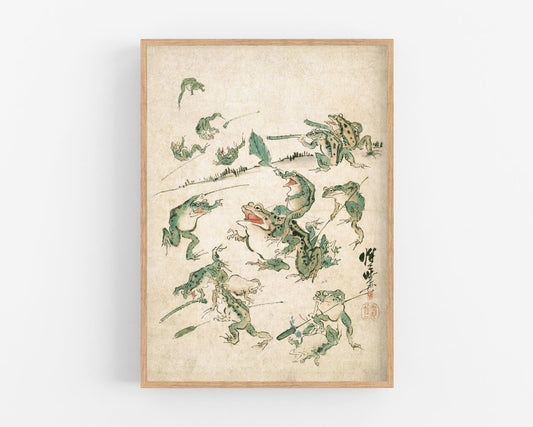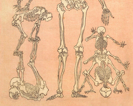 Giclee fine art vintage print of skeletons from the sketchbook of Japanese artist Kawanabe Kyosai, 19th century.