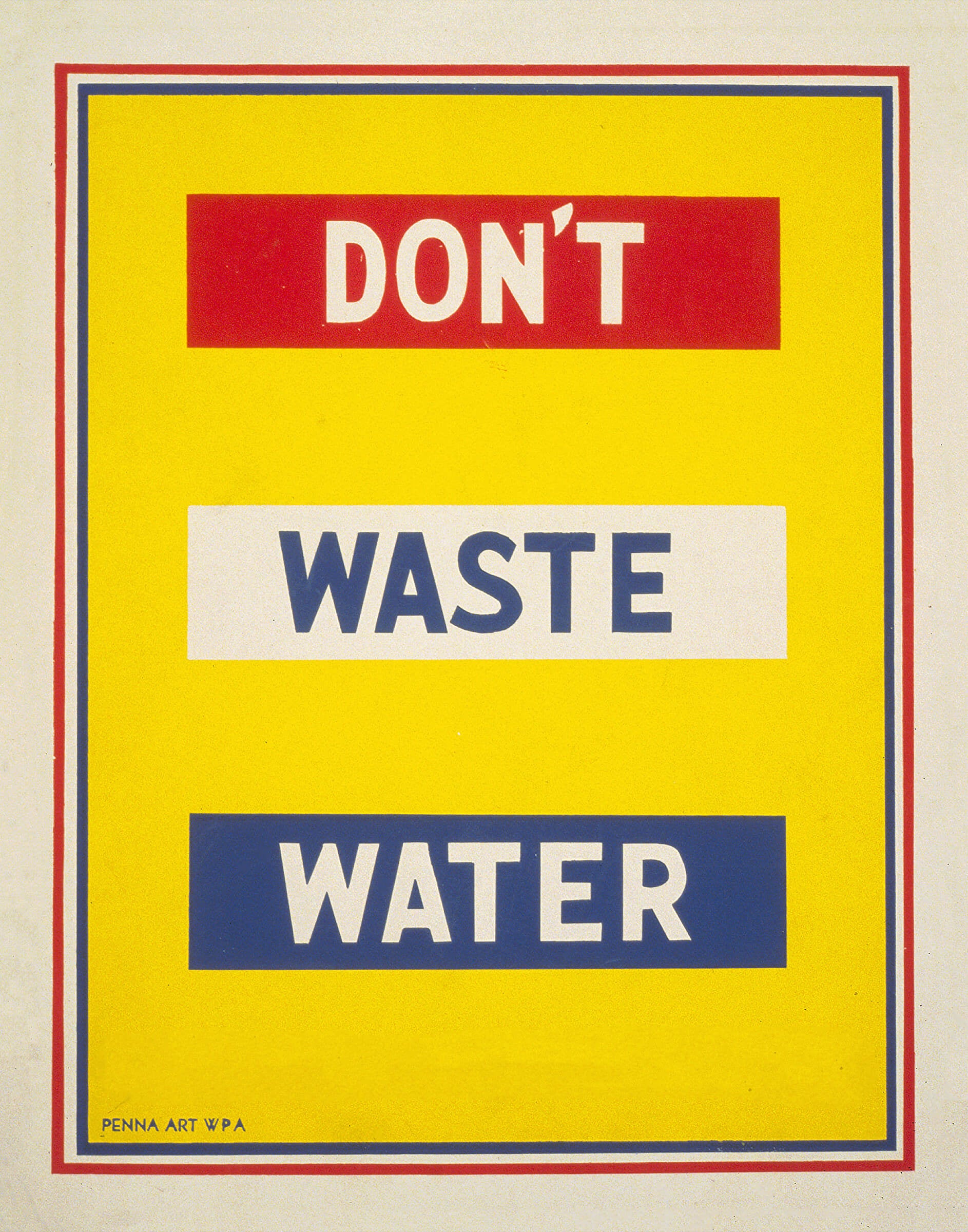 Giclee fine art vintage print of a WPA poster Don't Waste Water, early 20th century.