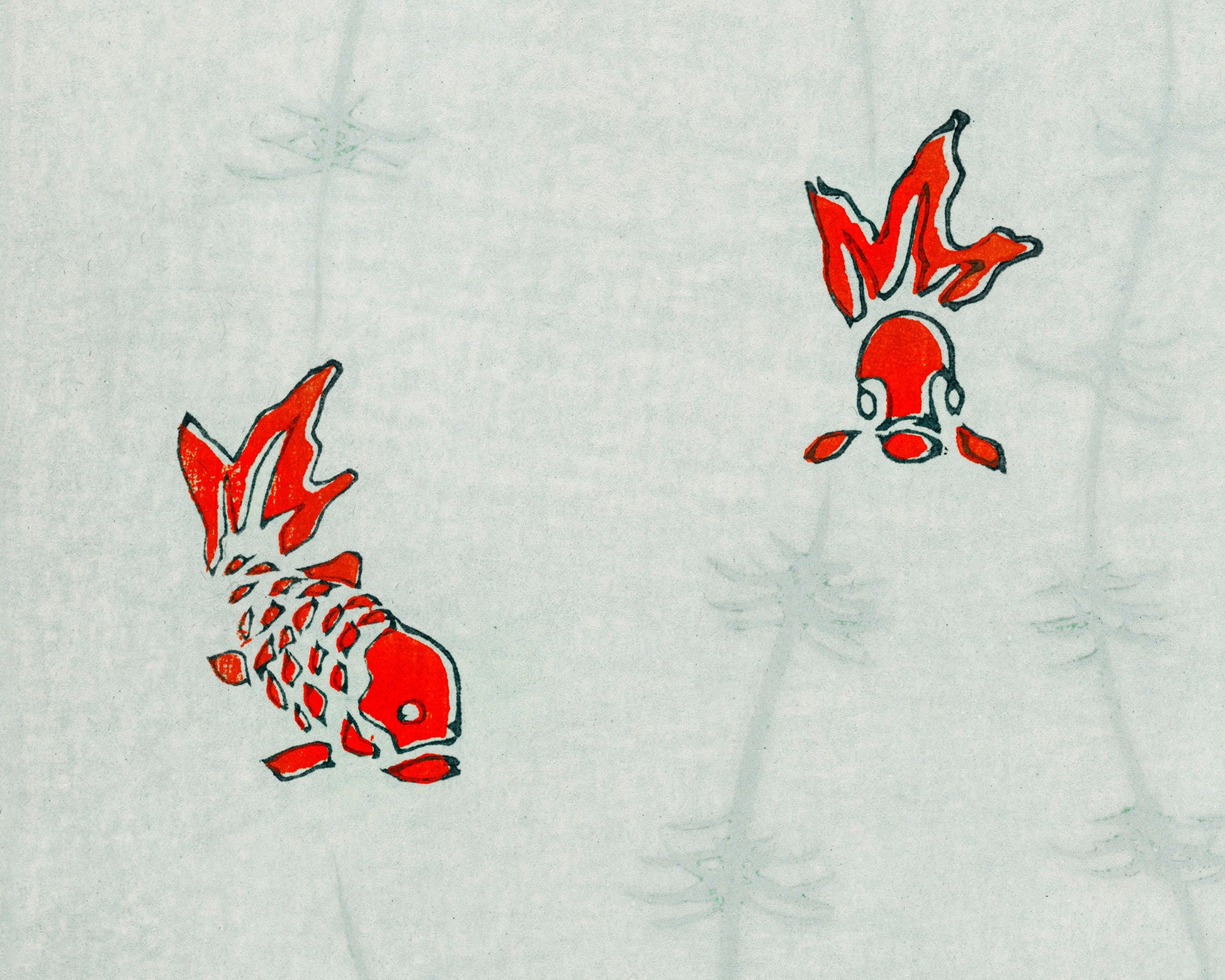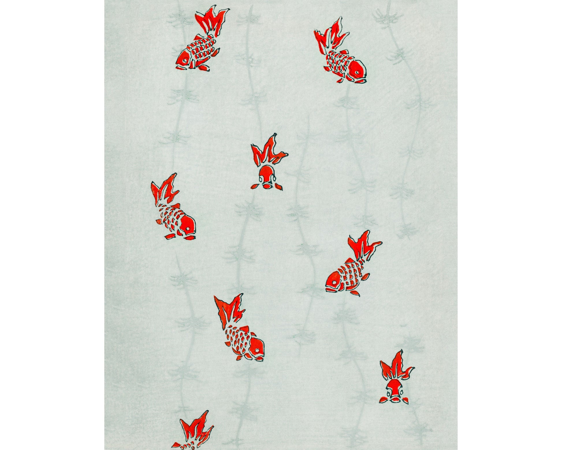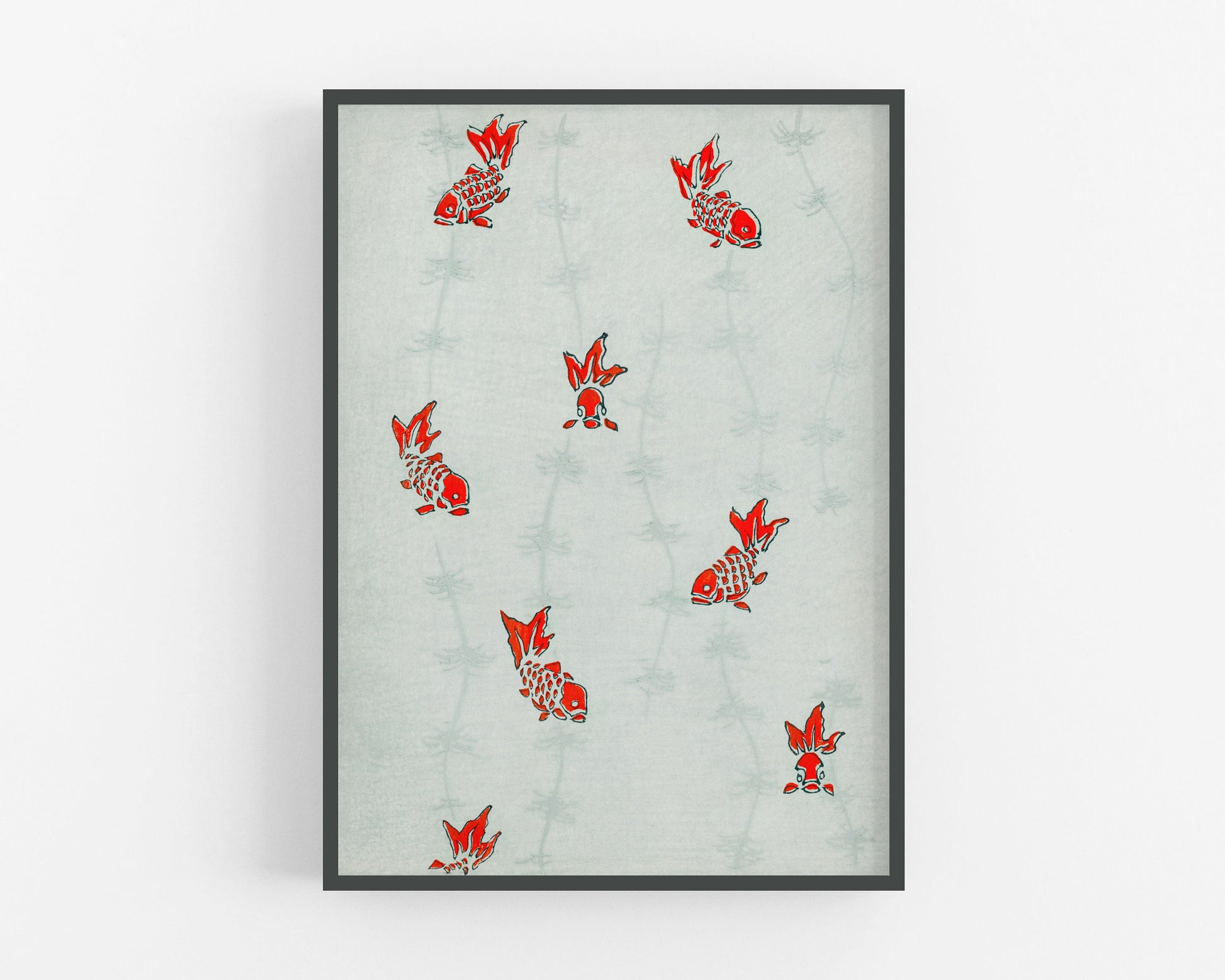 Giclee fine art vintage gold fish illustration, from Bijutsu Sekai, by Watanabe Seitei, 1893.