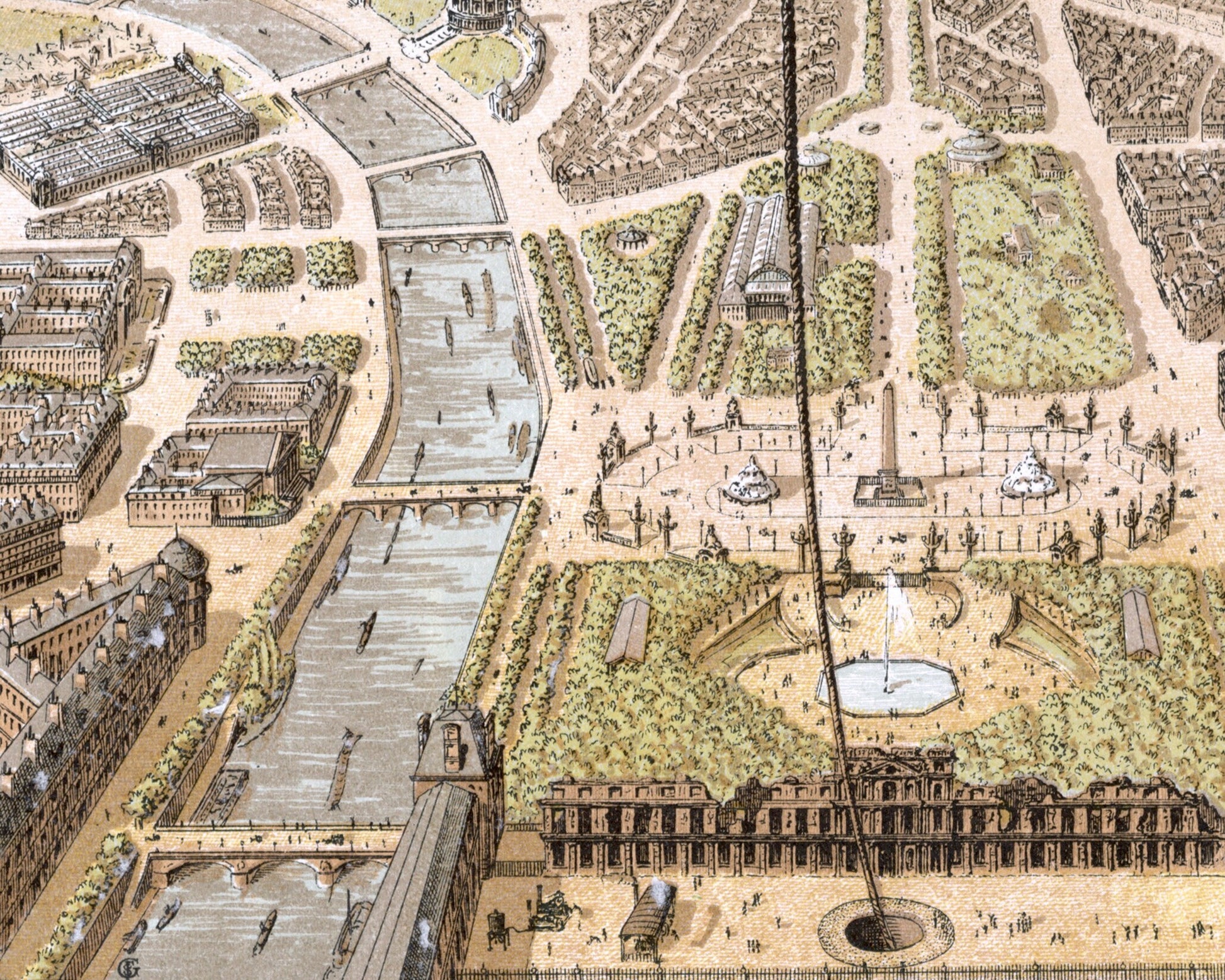 The Grand Balloon floats effortlessly across 1878's world's fair, with a panorama of Paris from the Tuileries garden.