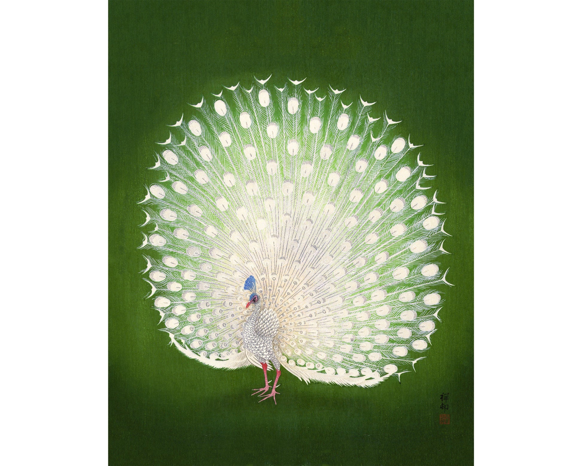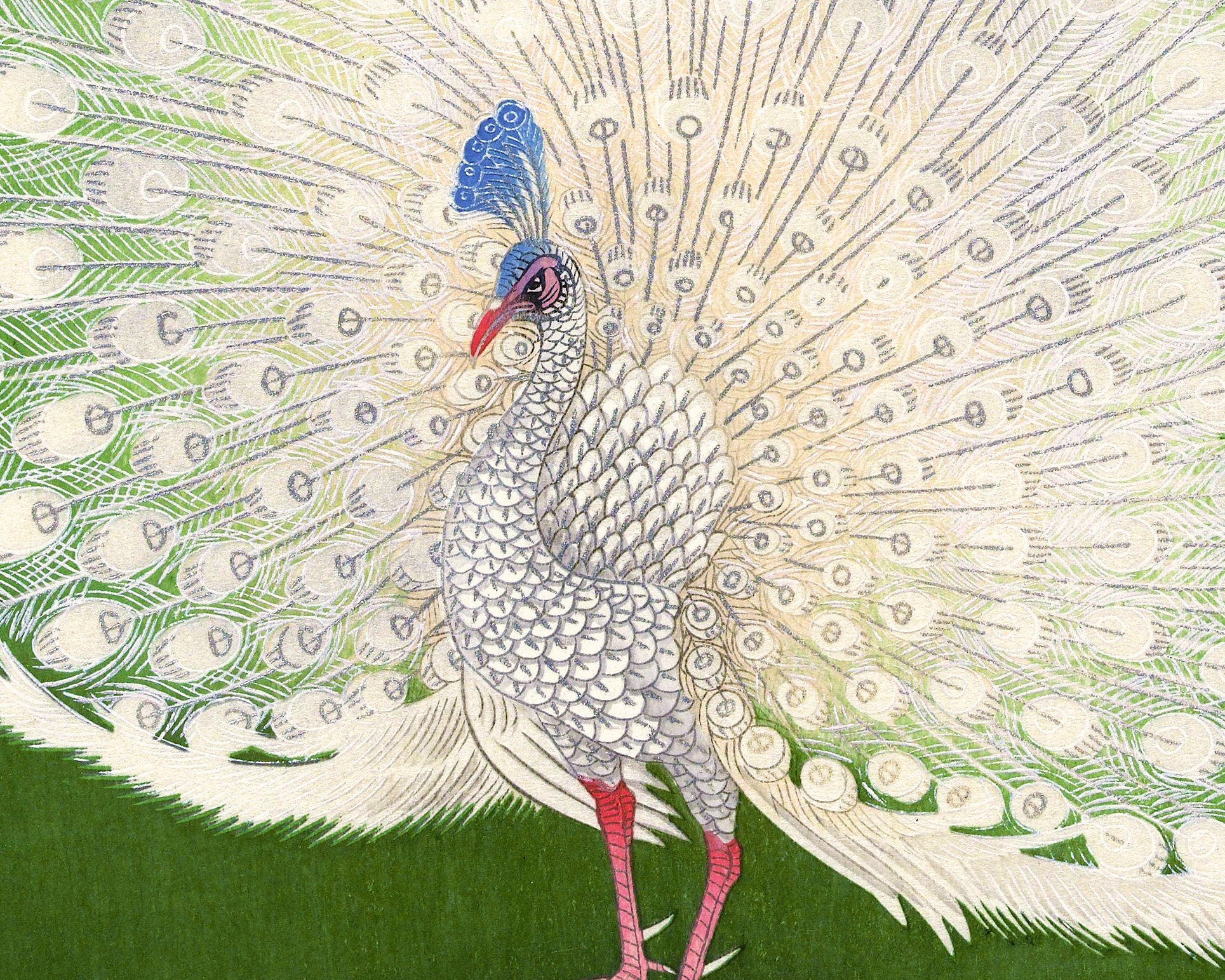 Giclee fine art vintage print, "Peacock," by print maker Ohara Koson in the early 1900's.